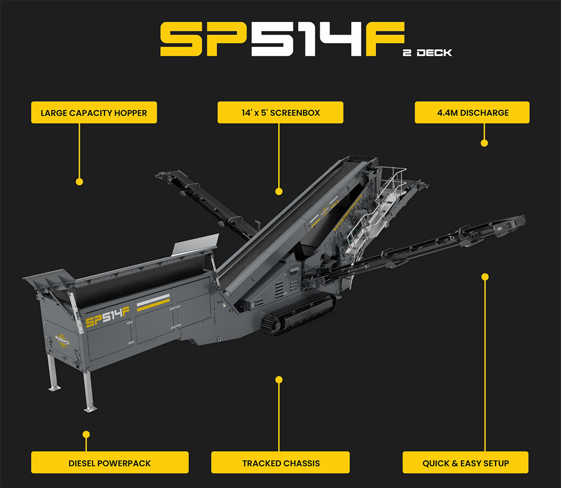 Ideal for use in industries such as construction, mining, and aggregate production, the SP514F offers robust performance and versatility, making it an essential tool for pre-screening and material sorting before further processing.